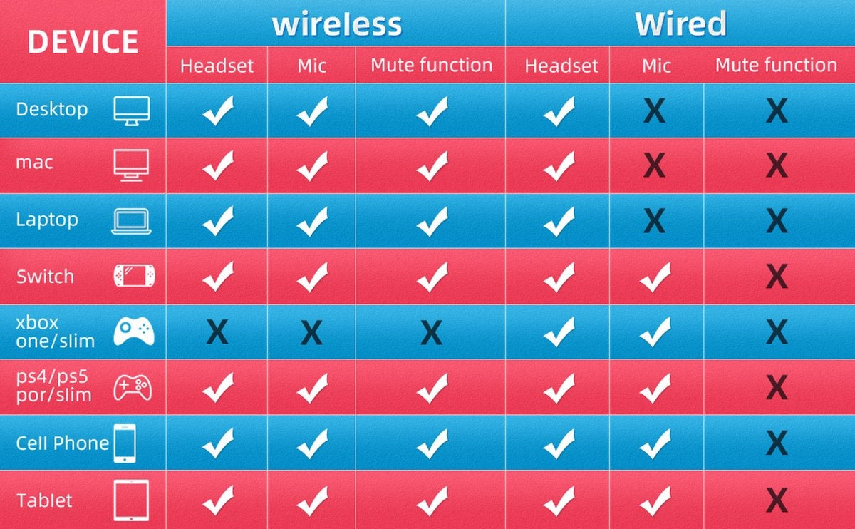 - 2,4 GHz Dongle ist kompatibel mit PS5, PS4, Switch, PC, Laptop.Bluetooth 5.0 ist kompatibel mit Android, IOS und WP Handys 3,5mm Audiokabel ist kompatibel mit Xbox, Xbox-Serie, PC, Laptop.
