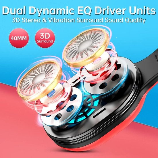 - Der 50-mm-Super-Size-Audio-Treiber hat ein breiteres Klangfeld und eine höhere Auflösung; EQ-Kompensation kann EQ-Sound automatisch anpassen und 3D immersive Soundeffekte während Spielen, Musik und Filmen erreichen.