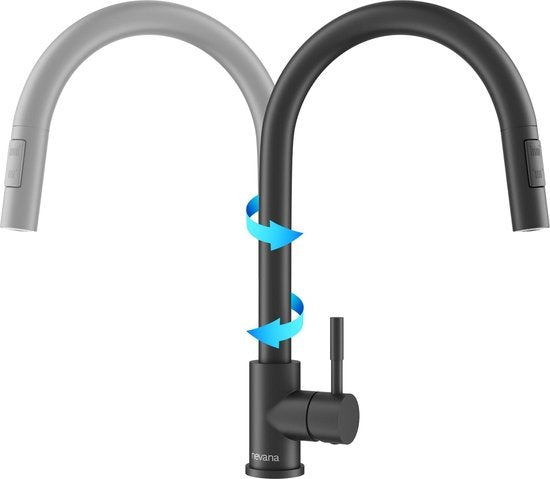 Nevana - Küchenarmatur - 2 Modi - mit ausziehbarem Auslauf - Edelstahl - Schwarz