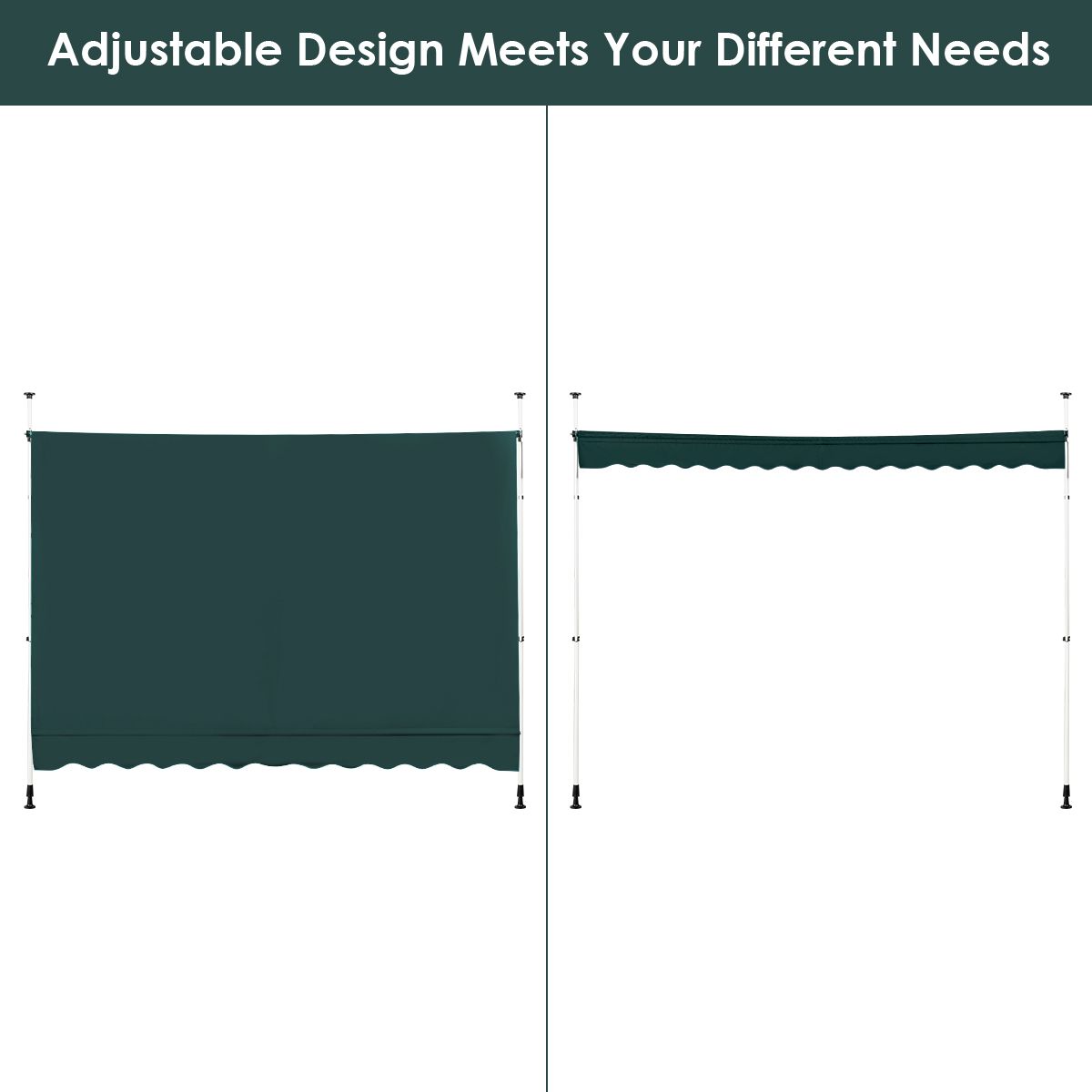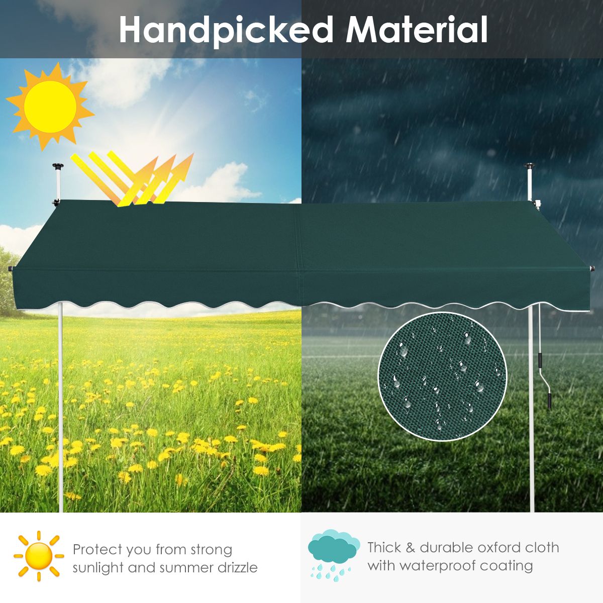 Küstenmarkise 300 x 120 cm Grün - Höhenverstellbar und manuell bedienbar
