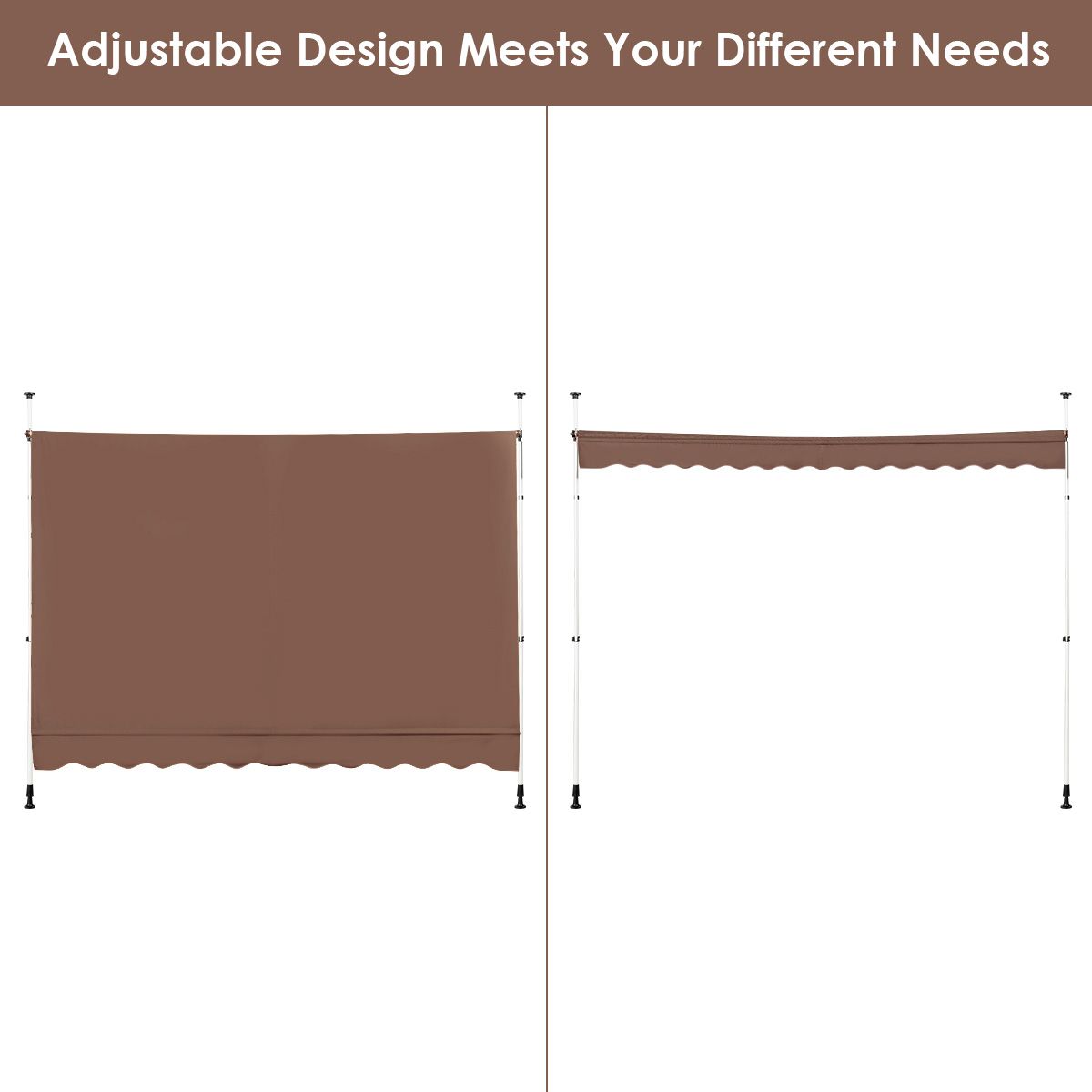 Dank des modernen Designs und der klassischen braunen Farbe passt diese Markise perfekt in jede Außenumgebung. Verwenden Sie sie auf Ihrem Balkon, Ihrer Terrasse, in der Nähe von Fenstern, Höfen, Veranden oder in Gastronomiebetrieben für einen angenehmen und geschützten Außenbereich.
