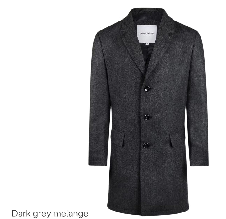 L Dunkelgrauer Mantel aus melierter Wolle mit Fischgrätmuster MM242.1004.04.1203 McGregor