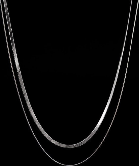 Laura Ferini Damenhalskette Chiara Silber - Silberne Gliederkette mit 2 Lagen - 18K Weißgold vergoldet - Halskette - Halskette - Schmuck - Accessoires - Damenhalskette