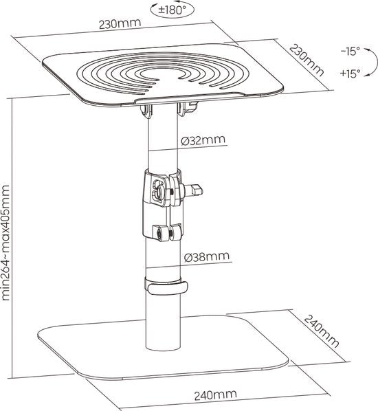 Ein Set aus zwei vielseitigen Lautsprecherständern, ideal für die Platzierung auf einem Schreibtisch, Möbel oder Regal in Ihrem Wohnzimmer, Schlafzimmer, Studio oder Büro. Der von 26 cm bis 40 cm höhenverstellbare Lautsprecherständer kann um 180 Grad gedreht und um 15 Grad nach oben oder unten geneigt werden, um ein optimales Hör- und Musikerlebnis zu ermöglichen. Das innovative Design mit vibrationsabsorbierender Silikonauflage verbessert die Klangqualität und Klarheit, während der Lautsprecher fest und sicher auf dem Ständer steht. Das Kabelmanagement sorgt für ein sauberes Erscheinungsbild, indem es die Kabel ordentlich verdeckt. Die maximale Tragfähigkeit pro Ständer beträgt 15 kg. Die Abmessungen dieses Lautsprecherständers sind 23 cm x 23 cm, mit einer einstellbaren Höhe von 26 cm bis 40 cm.