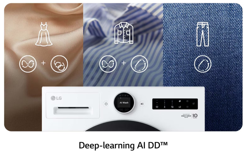 Entdecken Sie, wie LG künstliche Intelligenz einsetzt, um Ihre Waschroutine zu verändern. Die AI DD-Engine erkennt automatisch Ihre Kleidung, analysiert die Weichheit des Gewebes und das Füllgewicht der Trommel und wählt das optimale Waschprogramm aus. Das Ergebnis: perfekt gereinigte Kleidung, die länger hält.
