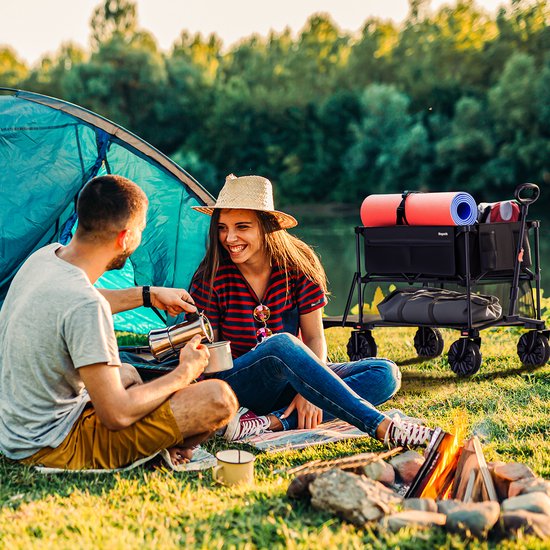LifeGoods Double Wagon - Faltbarer Wagen - 200KG - 400L - faltbar - mit Schutzhülle - Schwarz