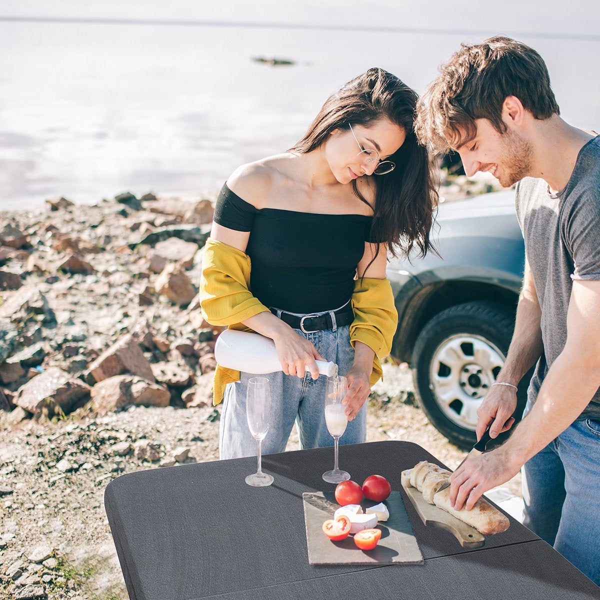 Der LifeGoods Campingtisch lässt sich leicht zu einem kompakten Koffermodell zusammenfalten. Praktisch für den Einsatz beim Camping, als zusätzlicher Tisch oder für den Einsatz in kleineren Räumen. Außerdem müssen Sie ihn nicht herumschleppen, um ihn zu bewegen. Einmal zusammengeklappt, können Sie ihn einfach an den Griffen anheben und verstauen. Auf diese Weise muss der Tisch kein Schandfleck sein, er nimmt keinen unnötigen Platz weg und Sie können sitzen, wo immer Sie wollen.