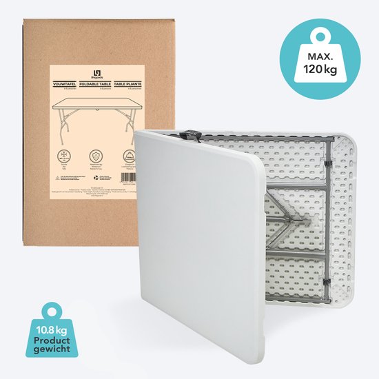 Sie veranstalten ein Familiengrillfest im Garten? Oder hat jemand Geburtstag? Dann ist der Klapptisch von LifeGoods die perfekte Lösung! Die Tischplatte misst 180 x 70 cm und bietet damit mehr als genug Platz für 6 bis 8 Personen. Da er wetter- und korrosionsbeständig ist, können Sie den Klapptisch das ganze Jahr über bedenkenlos im Freien verwenden. Der Klapptisch hat ein stabiles Metallgestell und ist mit bis zu 120 kg belastbar. Der Tisch lässt sich in Sekundenschnelle aufklappen.