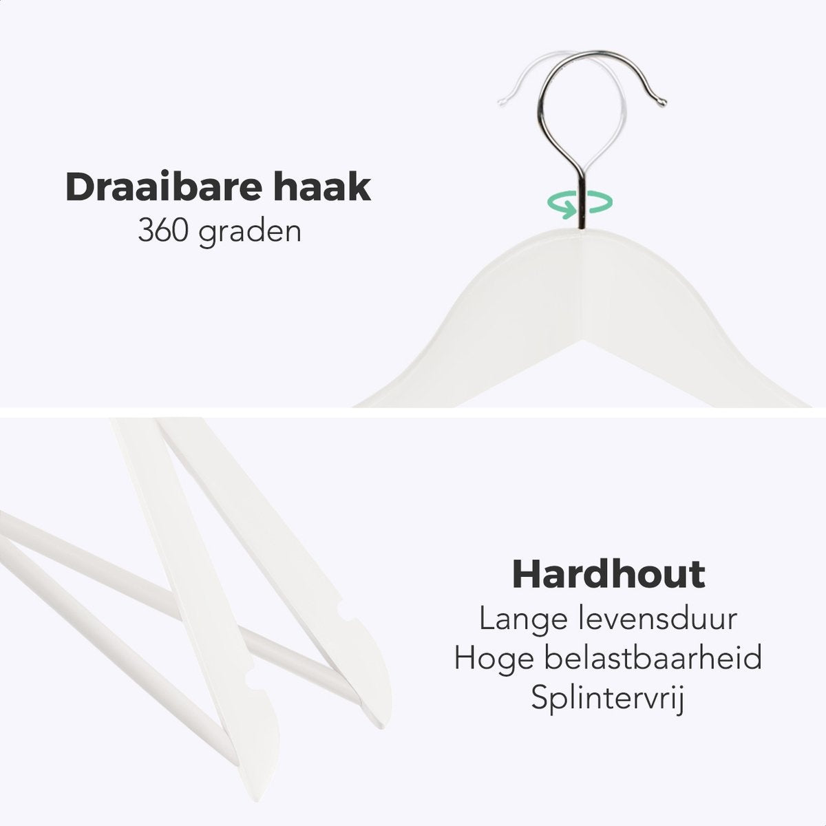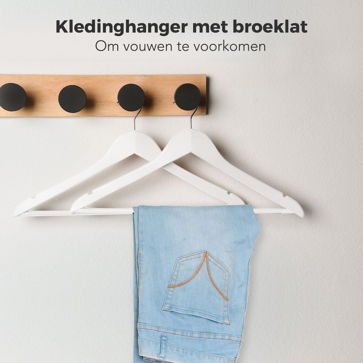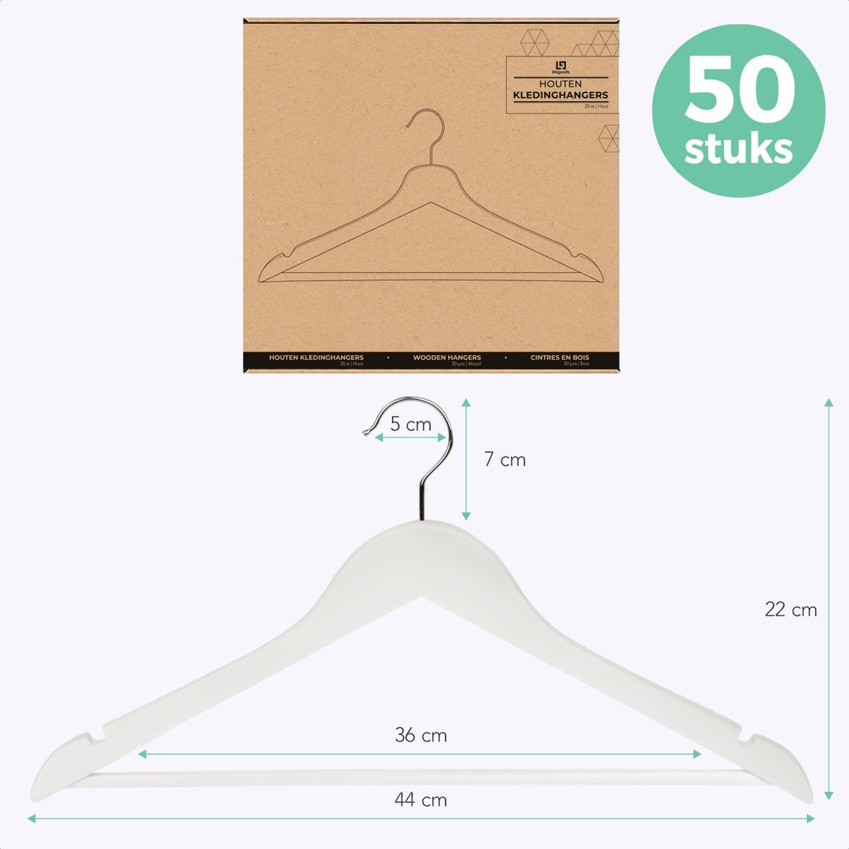 LifeGoods Kleiderbügel - Mit Hosenstange - Hartholz - Weiß - 50 Stück