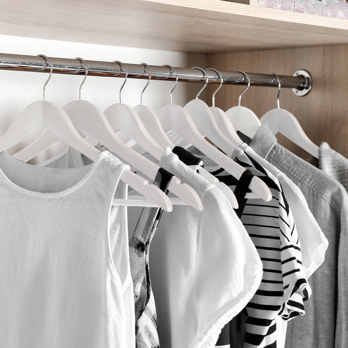 Diese luxuriösen Holzbügel haben ein etwas feineres Design als ein durchschnittlicher Kleiderbügel, ohne jedoch an Stärke einzubüßen. Außerdem sind die Seiten der Bügel abgeflacht, um noch mehr Platz zu sparen. Lassen Sie sich überraschen, wie viel tatsächlich in Ihren Kleiderschrank passt!