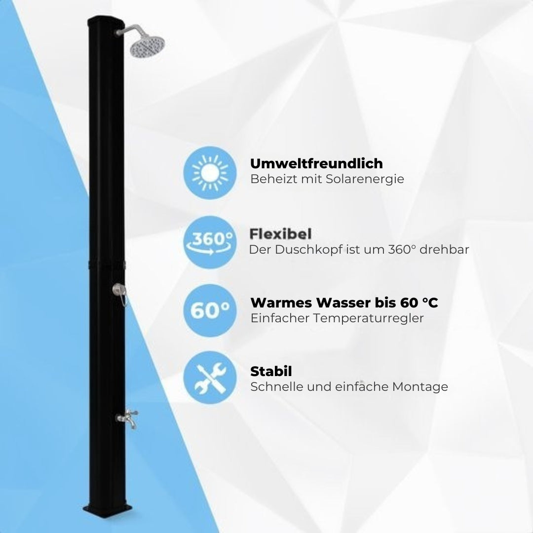 LifeGoods Outdoor-Dusche - Solar - 360° drehbarer Duschkopf - 35L - Schwarz