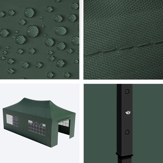 LifeGoods Partytent - Paviljoen - 3x6 m - Zijwanden - Easy Up - Opvouwbaar - Waterdicht - Draagtas met Wieltjes - Donkergroen