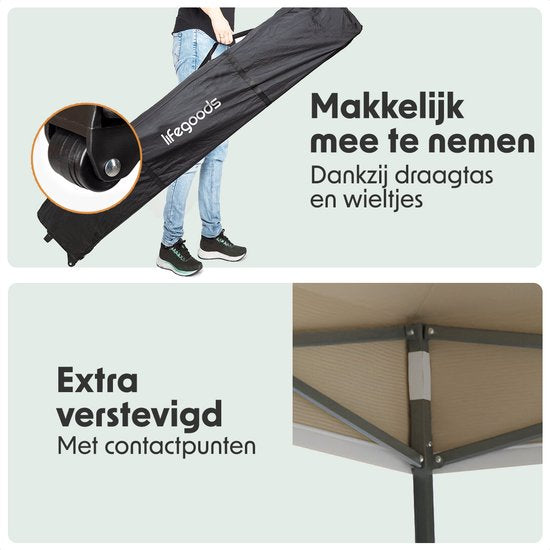 LifeGoods Partyzelt - faltbar - 3x6 m - einfacher Aufbau - Pavillon - wasserdicht - Tragetasche mit Rädern - Beige
