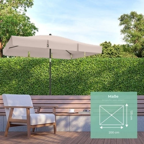 LifeGoods Sonnenschirm - 200x125cm - 30° neigbar - wasserdicht - mit Bezug - Taupe