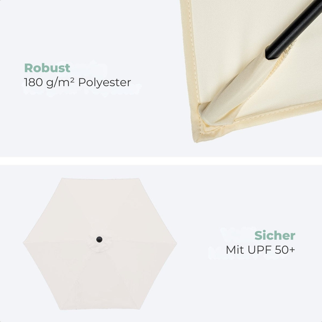 LifeGoods Sonnenschirm - 270 cm - 30° neigbar - wasserdicht - mit Bezug - Creme