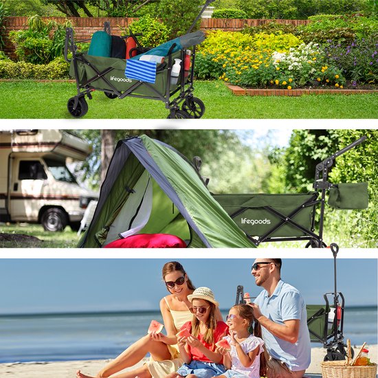 LifeGoods Wagon - Schwenkbare Räder - Bremssystem - bis zu 120Kg - 120 x 61 x 80cm - Grün