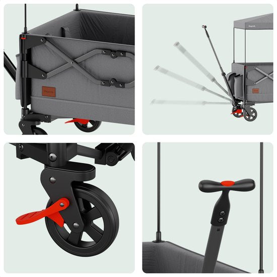LifeGoods Wagon - faltbar - Kindertransport - mit Dach - 80KG Tragfähigkeit - Strandwagen - schwenkbare Räder - grau