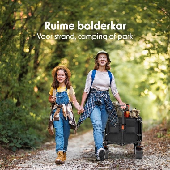 Darf ich vorstellen: der LifeGoods XL Bolderkar, der ultimative Begleiter für jede Outdoor-Aktivität. Dank seines 200-Liter-Gepäckraums und seiner 150-KG-Tragfähigkeit müssen Sie sich keine Sorgen mehr machen, nicht genug Platz für all Ihre Sachen zu haben. Egal, ob Sie zum Strand fahren, einen Ausflug in den Park planen oder campen gehen, dieser Faltwagen bietet genügend Platz für alles, was Sie brauchen. Und mit den geländegängigen PU-Lederrädern, die mit Vorderbremsen ausgestattet sind, ist kein Untergrund zu rau.
