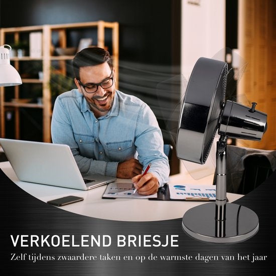 Lifetime Air Tischventilator - 230V - Tischventilator 30CM - 3 Geschwindigkeiten - Oszillationsfunktion - Neigbar - Schwarz