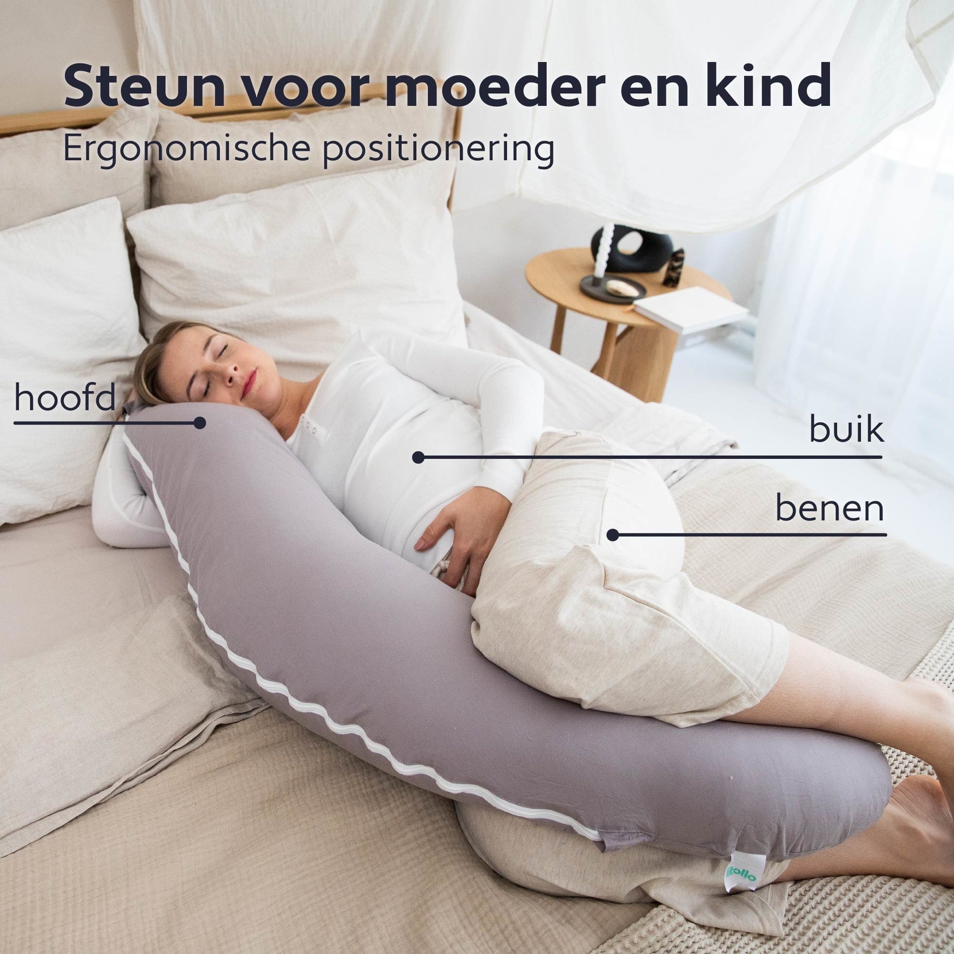 Litollo® - Schwangerschaftskissen (J-förmig) - Umstandskissen - Stillkissen - Körperkissen - 145cm - Abnehmbarer Bezug - Grau