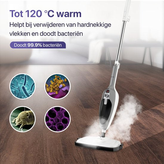 Dieser Dampfreiniger ist dank seiner wendigen Düse und dem verstellbaren Design einfach und angenehm zu benutzen. Außerdem sind die Aufsätze dank der praktischen Aufsatztaste leicht zu wechseln. Der Dampfreiniger von Luman bietet optimale Flexibilität mit einem 6 Meter langen Kabel und einem 1 Meter langen Schlauch. Der verlängerte Teleskopstiel zwischen Dampfreiniger und Aufsatz lässt sich mühelos in einen Handdampfreiniger umwandeln, indem Sie den Aufsatz entfernen. Zum Glück müssen Sie nicht lange warten, bis Sie mit diesem Luman-Dampfreiniger loslegen können. Innerhalb von nur 20 Sekunden erreicht er seine maximale Temperatur von 120 Grad Celsius. Diese hohe Temperatur sorgt nicht nur dafür, dass Flecken effektiv entfernt werden, sondern tötet auch Bakterien und Pilze sofort ab.