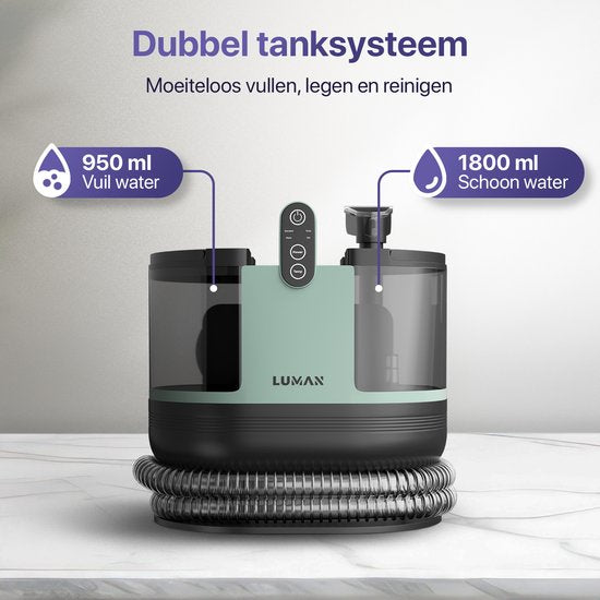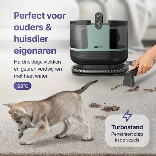 LUMAN 4 in 1 Teppichreiniger - Heizfunktion und Selbstreinigung - Fleckenreiniger - Sitzreiniger - Reiniger für Sofa, Boden, Auto und Teppich - 4 Bürsten - Inklusive Reinigungsmittel - 7 Meter Kabel