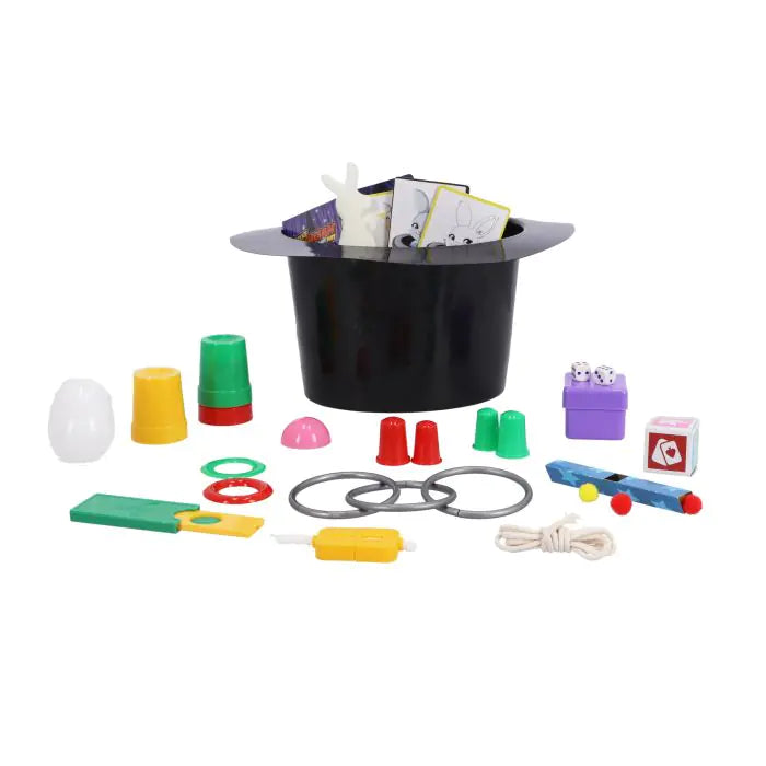 Treten Sie in die Fußstapfen großer Zauberer mit der Magic Hat Magic Box! Dieses komplette Set enthält alles, was Sie brauchen, um beeindruckende Tricks vorzuführen und Ihr Publikum zu verblüffen. Vom klassischen Kaninchen-aus-dem-Hut-Trick bis hin zu anderen magischen Überraschungen - diese Box hilft Ihnen, die Geheimnisse der Magie zu entdecken. Das Set enthält einen stilvollen Zauberhut, einen Zauberstab und eine Reihe von Zubehörteilen, mit denen Sie die Tricks einfach und Schritt für Schritt erlernen können. Dank der klaren Anleitungen eignet sich das Set perfekt für Anfänger und junge Zauberer, aber auch erfahrene Zauberer haben ihre Freude daran. Es ist eine großartige Möglichkeit, Selbstvertrauen und Präsentationsfähigkeiten zu entwickeln, während Sie Ihr Publikum überraschen und unterhalten. Ganz gleich, ob Sie vor der Familie, Freunden oder einem größeren Publikum auftreten, der Zauberhut-Zauberkasten sorgt für magische Momente, die jeden in Erstaunen versetzen werden. Ideal als Geschenk oder um Ihre eigene magische Reise zu beginnen! Lassen Sie die Magie beginnen und werden Sie der Star der Show!
