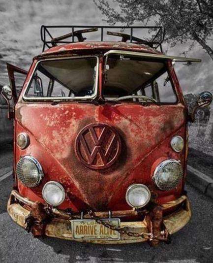 GemäldeWagen - Der alte rote Bus - 30x40 cm