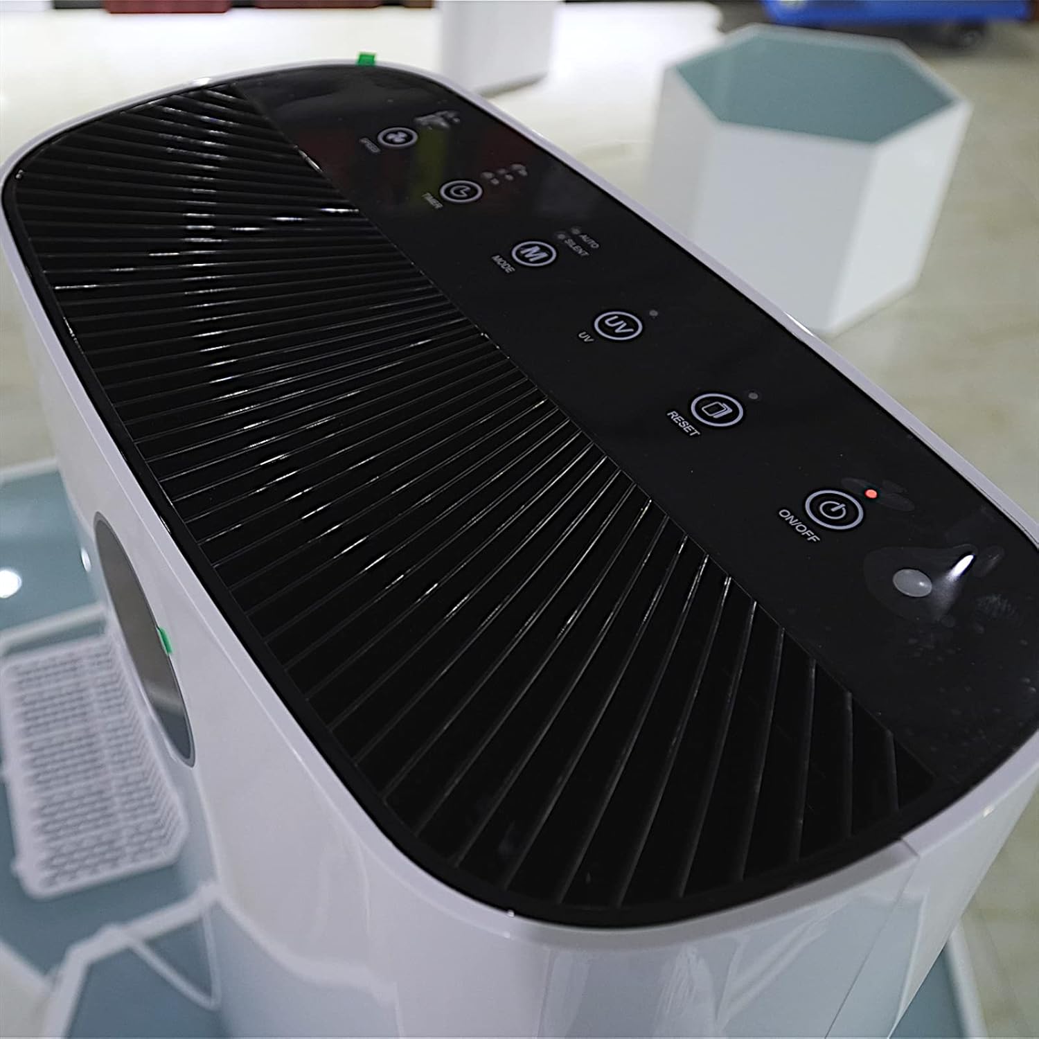 Genau richtig: ein ziemlich ausgeklügeltes System. Das Ergebnis? Der Luftreiniger entfernt Partikel, Gerüche, Bakterien und Viren, so dass Sie mit gutem Gewissen durchatmen können.