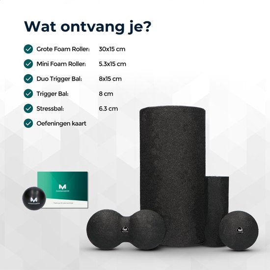 Massagerr® Box - Schaumstoffroller-Set mit Triggerpunkt-Ball & Duo-Massageball in Schwarz - Massageroller - Schaumstoffroller - Faszien - Fitness - Massage-Set - inkl. Stressball