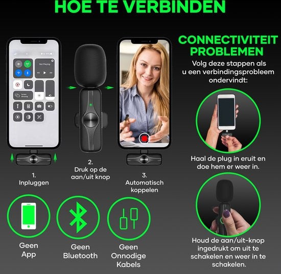MATTI - 2-in-1 Drahtloses Mikrofon - Mikrofon iPhone - Krawattennadelmikrofon - schwarz
