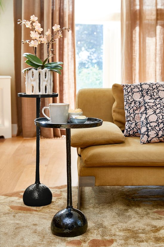 Der Beistelltisch Colin von Mica Decorations bietet eine praktische und stilvolle Lösung! Dieser Tisch ist aus recyceltem Aluminium gefertigt, hat eine Höhe von 68 cm und einen Durchmesser von 24 cm. Der schwarz gefärbte Tisch verfügt über eine großzügige, runde Platte und einen schlanken Hals, so dass Sie ihn leicht mit einer Hand zu einem Stuhl, Sofa oder sogar in die Badewanne stellen können. Ideal, um Ihre Tasse Kaffee oder ein Buch in Reichweite zu haben! Das Aluminium hat eine dezente Streifenstruktur, die zu einem eleganten Look beiträgt. Kombinieren Sie diesen Beistelltisch mit anderen Colin Beistelltischen von Mica Decorations für einen spielerischen Effekt!