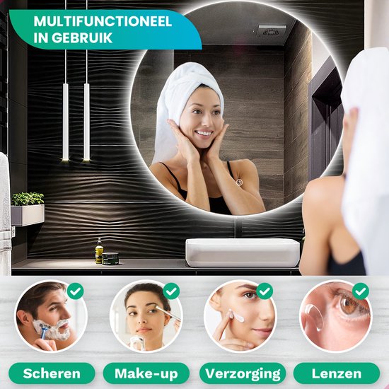 Mirlux Badezimmerspiegel mit LED-Beleuchtung & Heizung - Wandspiegel rund - Anti-Kondensations-Duschspiegel - 60CM