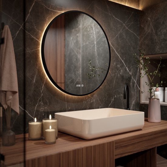 Mirlux Badezimmerspiegel - mit LED-Beleuchtung & Heizung - Anti-Kondensations - 80CM - Mattschwarz