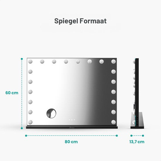 Mirlux Hollywood Mirror 80x60CM - 2 Bluetooth-Lautsprecher - USB & USB-C Ladeanschlüsse - LED-Beleuchtung - Schminkspiegel - 10x Zoom - Aufhängbar - Schwarz