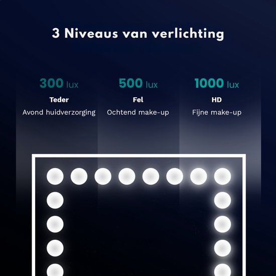Die 18 leistungsstarken LED-Lampen mit drei Lichteinstellungen - warm, natürlich und kühl - sorgen dafür, dass Sie immer die optimale Helligkeit haben. Dank der dimmbaren Funktion können Sie ganz einfach die gewünschte Helligkeit einstellen, von sanftem Licht für tagsüber bis hin zu hellem, professionellem Licht für das abendliche Make-up oder die Schminke.