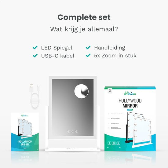 Der Mirlux Hollywood Mirror 44x30CM White bietet professionelle Helligkeit in einem stilvollen und kompakten Design. Dank der LED-Leiste mit 52 leistungsstarken Glühbirnen sorgt dieser Schminkspiegel mit Beleuchtung für eine gleichmäßige, schattenfreie Lichtverteilung - perfekt für Make-up, Hautpflege und Haarstyling.