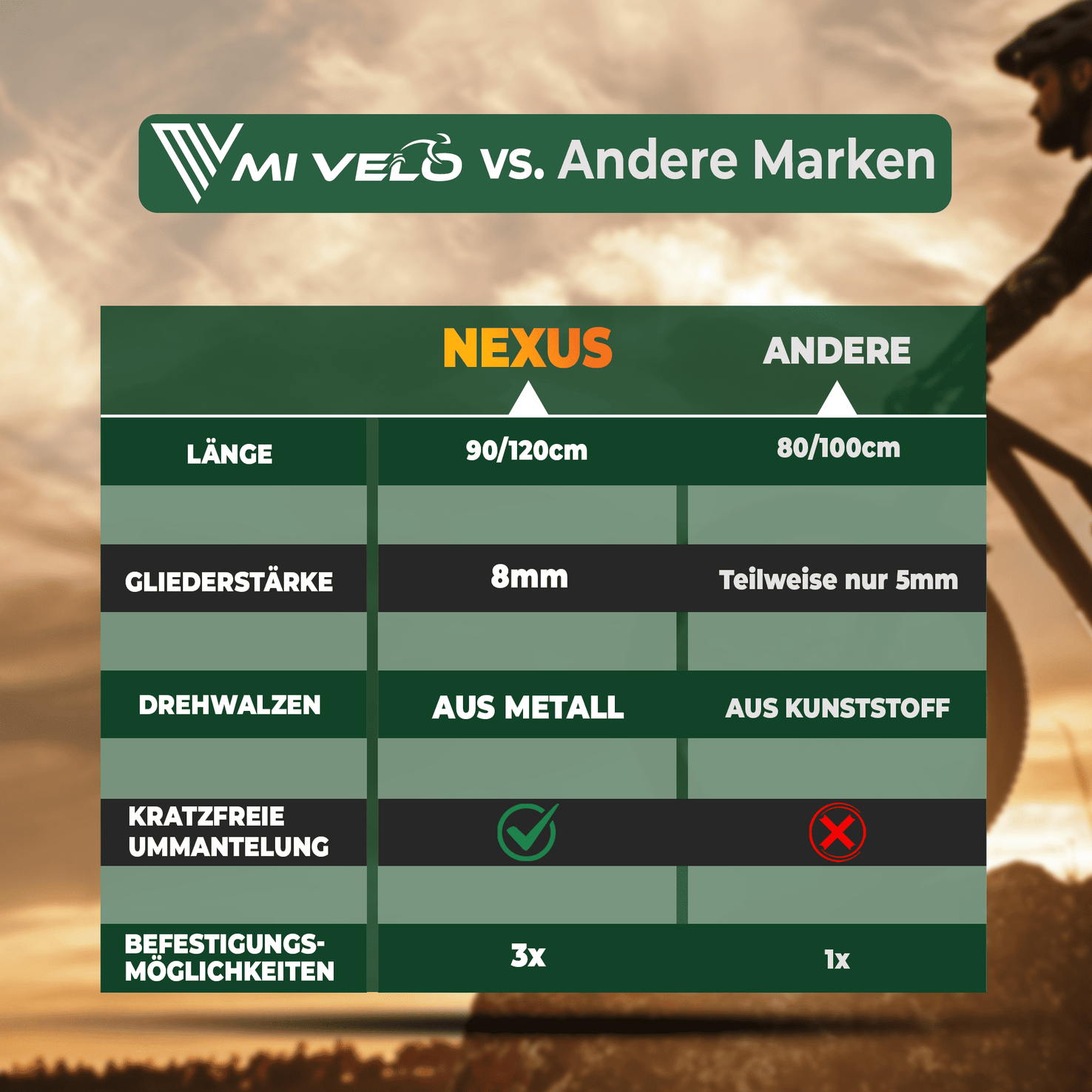 Die mitgelieferte Halterung macht es einfach, das Schloss überall hin mitzunehmen und sicher und geräuschlos an Ihrem Fahrrad zu befestigen. Mit einer Länge von 90 cm können Sie Ihr Fahrrad oder sogar zwei Fahrräder auf einmal an Pfosten, Zäunen oder Rahmen befestigen.