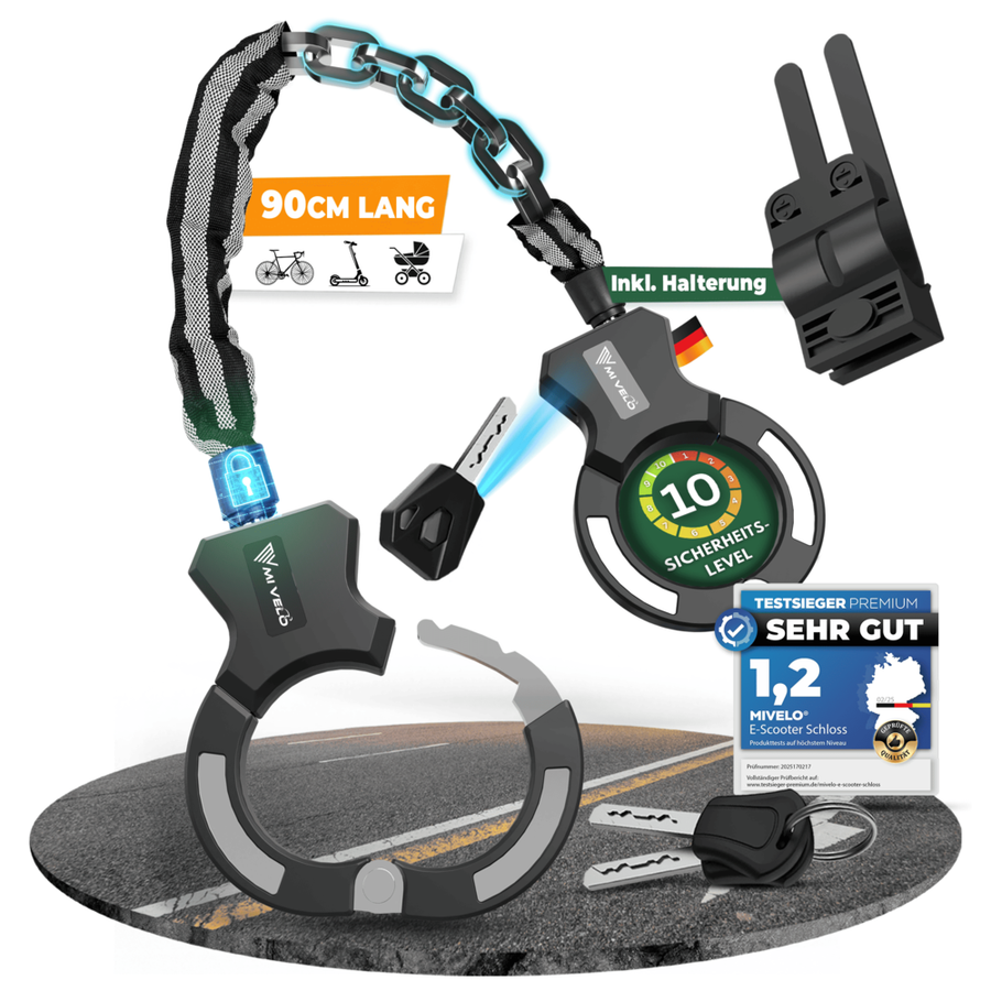 Das MIVELO Handschellen-Kettenschloss ist die ideale Wahl für alle, die ihr Fahrrad, E-Bike oder Elektroroller optimal vor Diebstahl schützen wollen. Dank der Kombination aus robustem Material, intelligenten Funktionen und einfacher Handhabung bietet dieses Schloss eine zuverlässige Lösung für den täglichen Gebrauch.