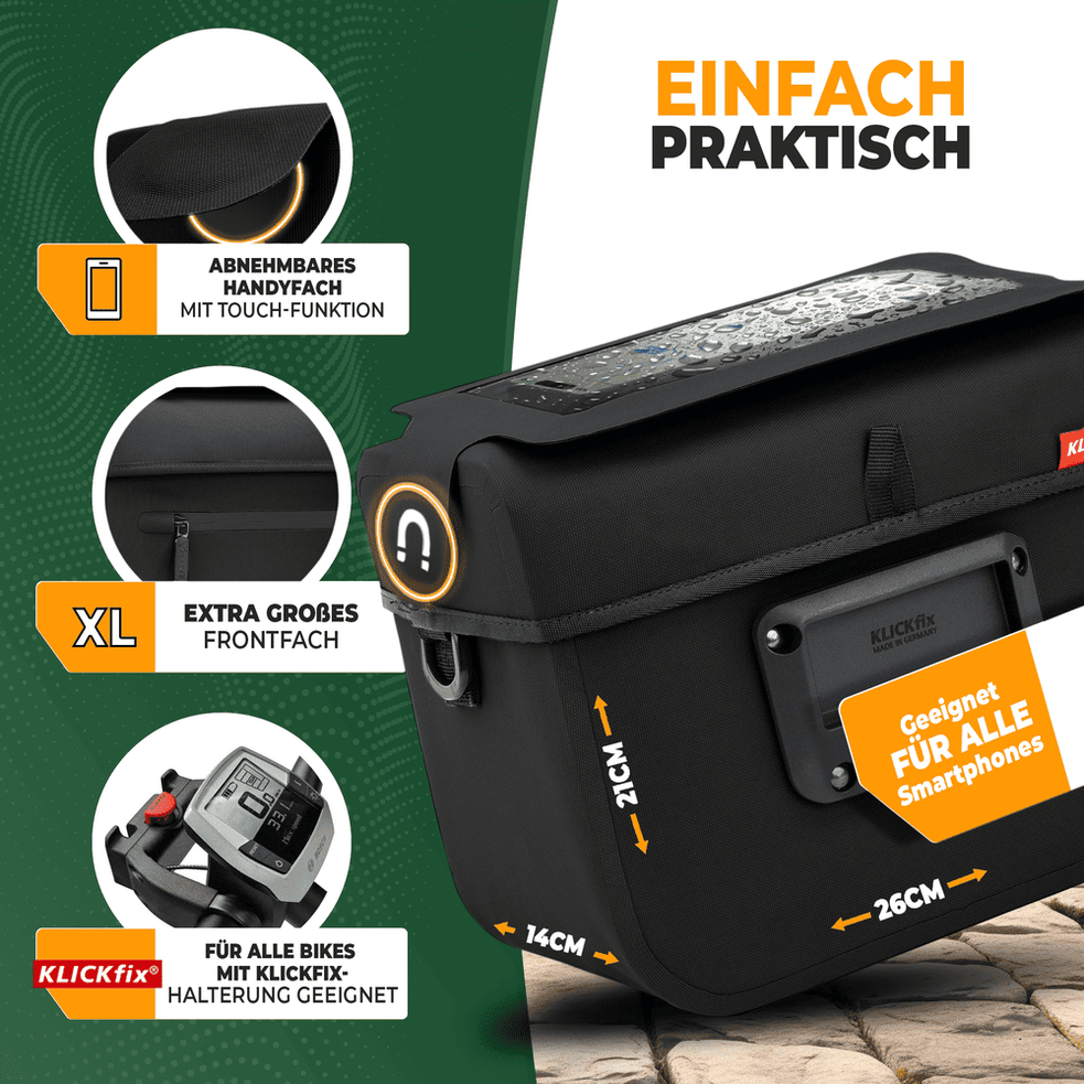 - Kompatibilität: Alle KLICKfix Lenker-Adapter (passend für alle Fahrräder)