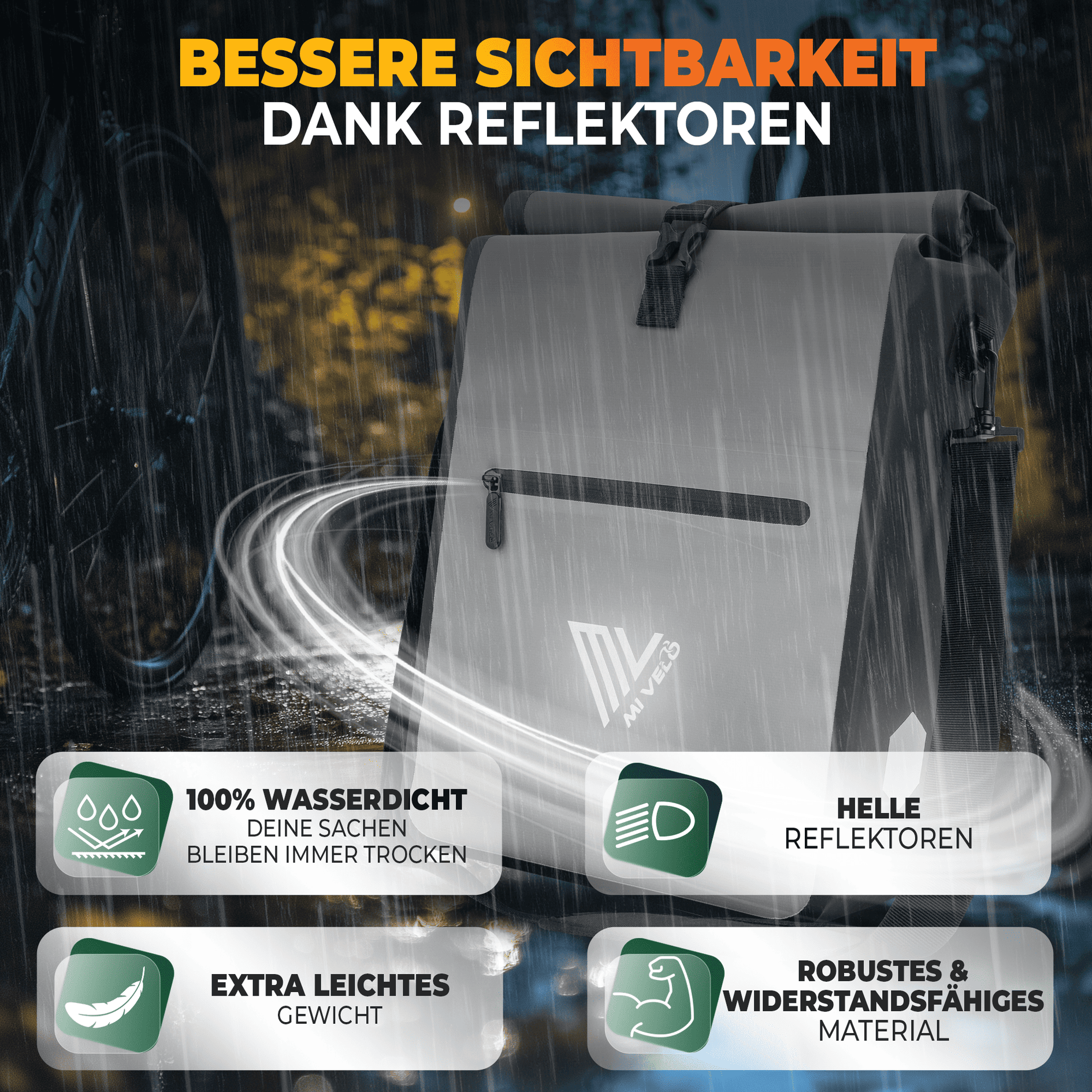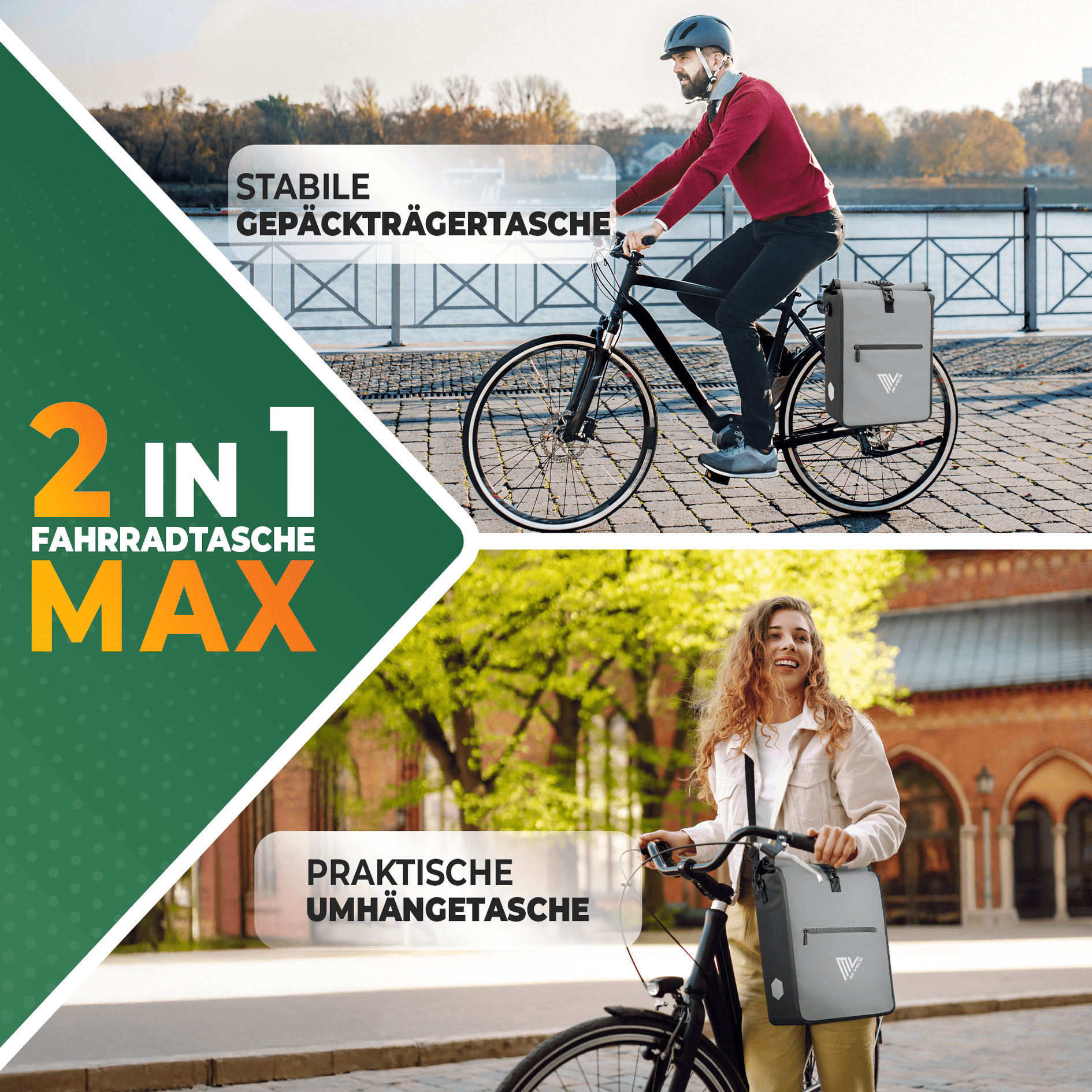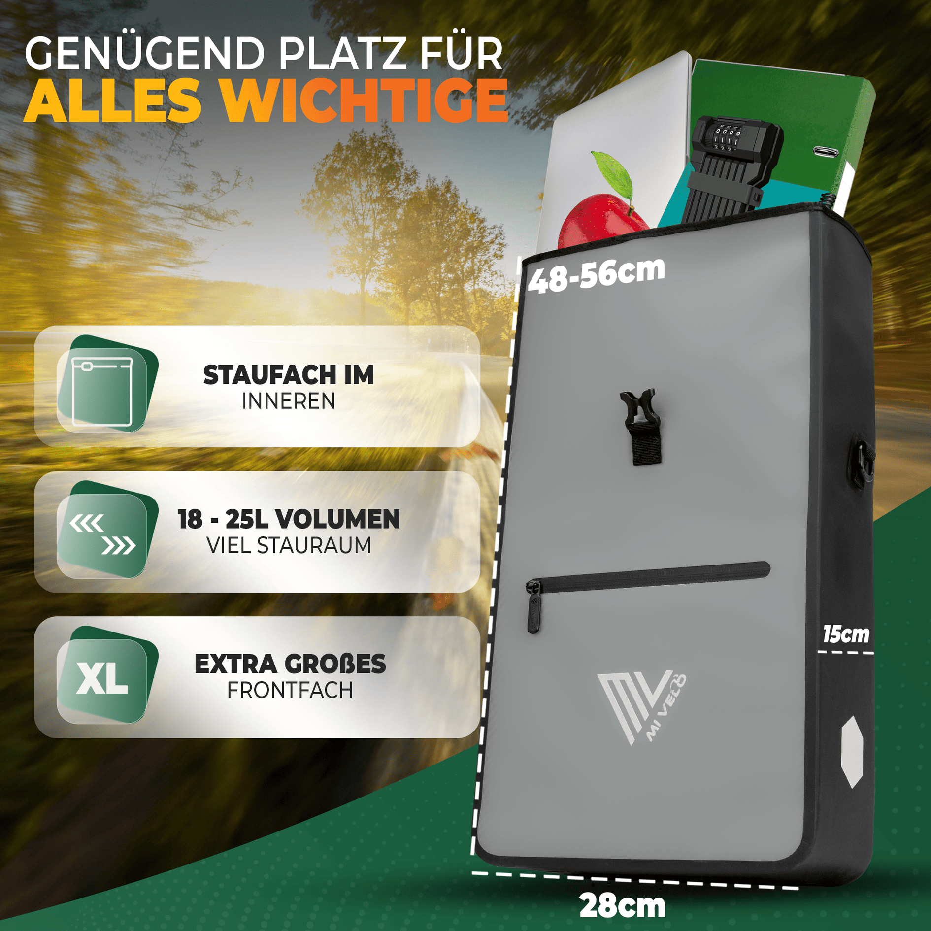 MiVelo Max - 2-in-1 wasserdichte Packtasche für Gepäckträger - Grau - 25 L
