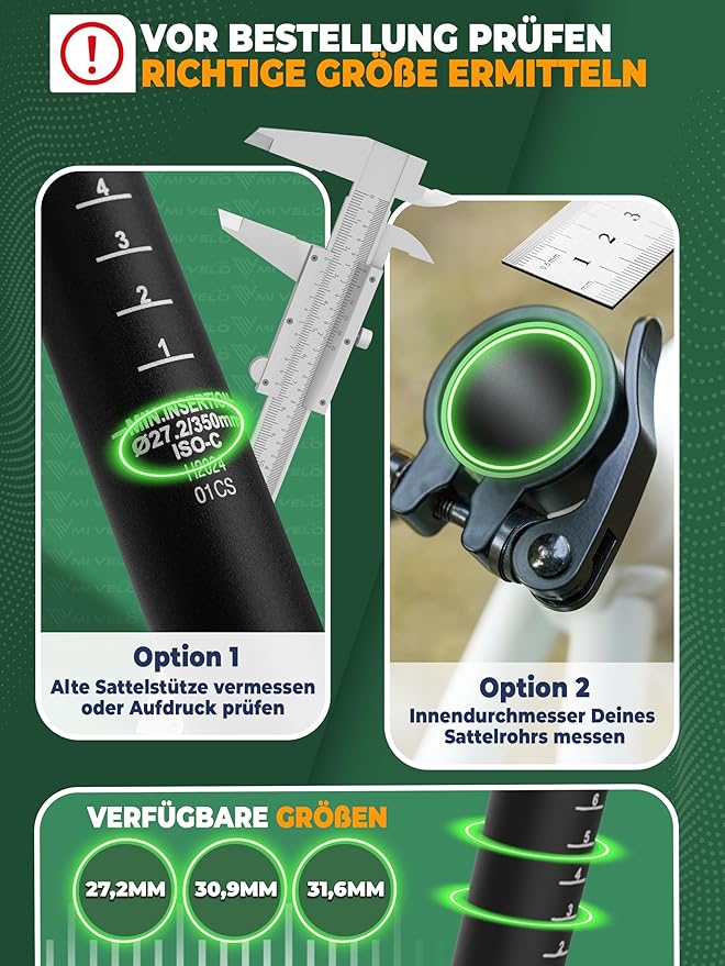 Die Sattelstütze ist schnell und einfach zu montieren und verfügt über klare Größenmarkierungen für eine genaue Höheneinstellung. Mit einer Auswahl an verschiedenen Durchmessern passt sie praktisch auf jeden Fahrradtyp.