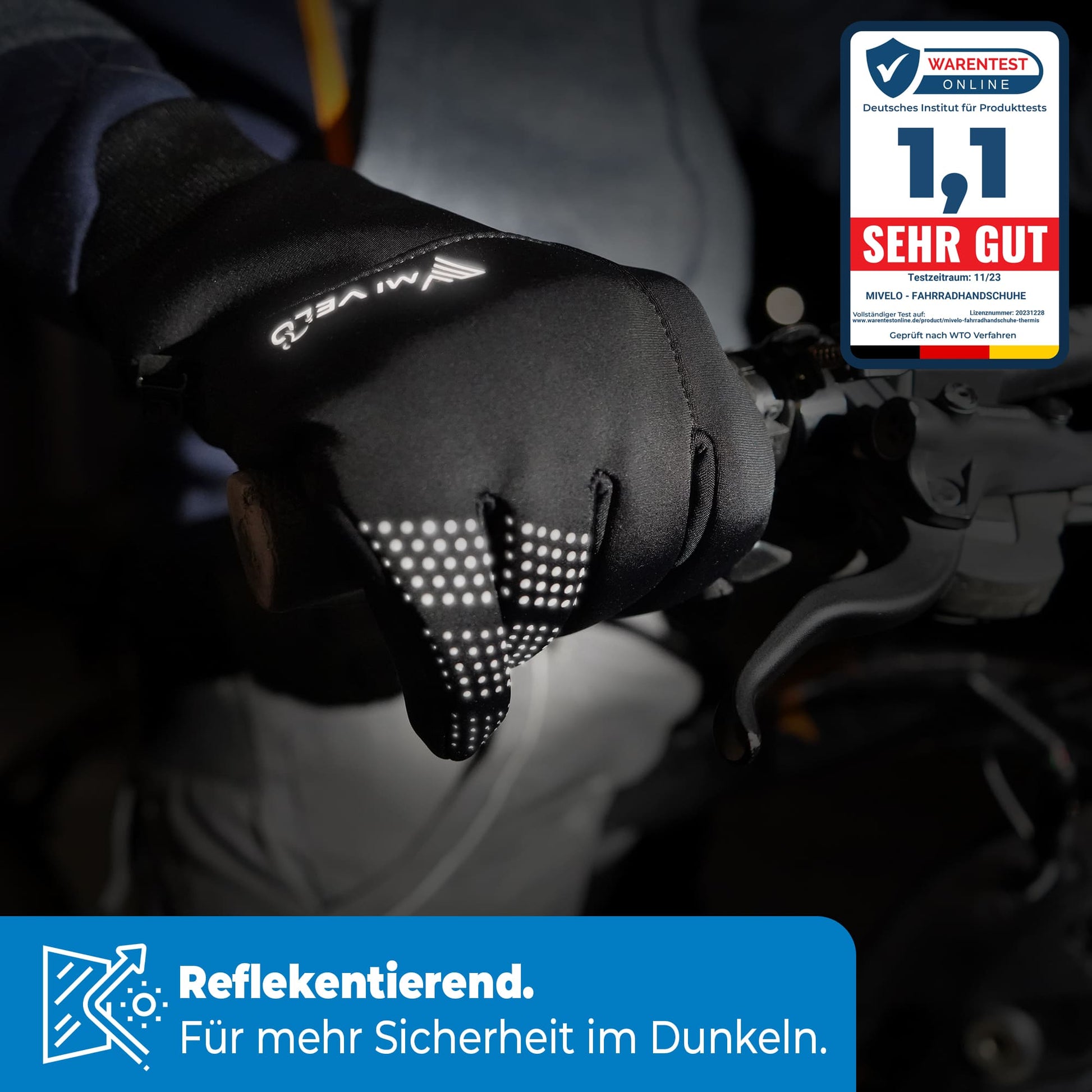 MiVelo Winddichte & Wasserabweisende Fahrradhandschuhe - Unisex - Schwarz - Größe M
