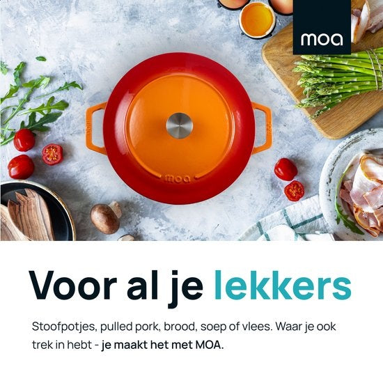 MOA Gusseisen-Kasserolle - Fassungsvermögen 5,7 Liter - 26CM - Rund - Alle Wärmequellen - Auch für Induktion - Gewicht 5,8 kg - Orange Rot - C26OR