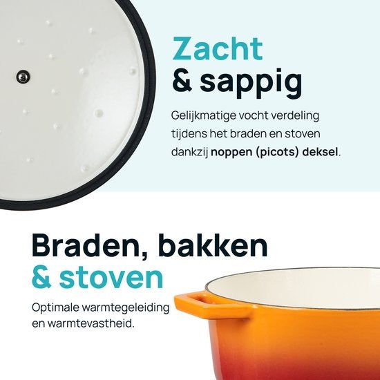 Welche Wärmequelle Sie auch immer verwenden, die gusseiserne Kasserolle ist für alles geeignet. Von Elektro, Gas, Halogen, Induktion bis hin zu Keramik und die Kasserolle kann auch in den Backofen.