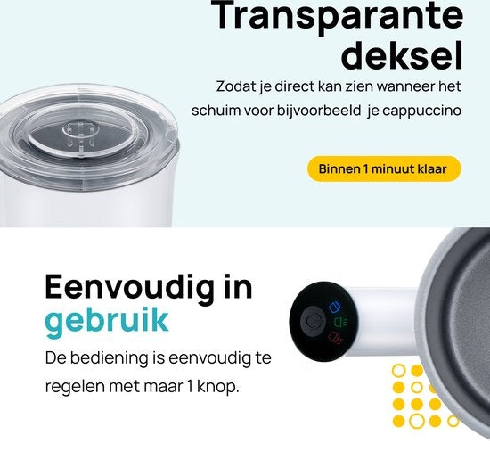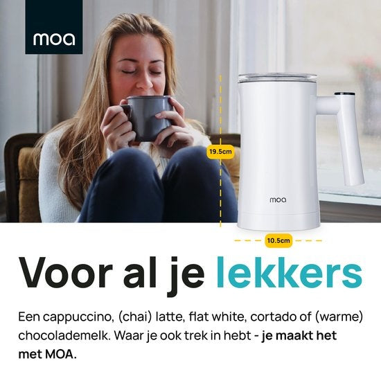 Der BPA-freie MOA elektrische Milchaufschäumer MF1W ermöglicht sowohl das Aufschlagen als auch das Erhitzen von Milch. Das Aufschlagen der Milch ist ideal für den perfekten Schaum auf dem Cappuccino, während die Erhitzungsfunktion zum Beispiel für eine heiße Schokolade genutzt werden kann. Es ist sogar möglich, Ihre Milch während des Aufschlagens zu erhitzen!