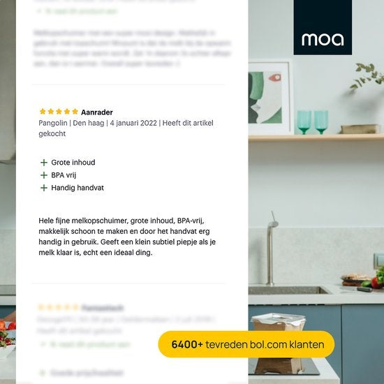 Für eine perfekte Tasse Kaffee muss man heute nicht mehr in ein teures Kaffeegeschäft gehen. Man brüht ihn einfach zu Hause auf. Eine Kaffeemaschine, frische Kaffeebohnen, Wasser und eventuell etwas Milch sind alles, was Sie brauchen. Sogar der professionelle Milchschaum für Ihren Cappuccino, Flat White oder Latte Machiato ist mit dem elektrischen Milchaufschäumer MF1W von MOA ganz einfach herzustellen. Mit einer Leistung von 500 Watt wird Ihre kalte Milch innerhalb einer Minute warm und aufgeschäumt.