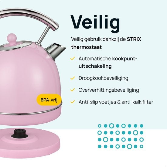 MOA Retro-Wasserkocher - Pastellrosa - Elektrisch - Edelstahl - EK4TP