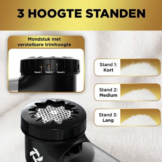 Dieser Fusselentferner verfügt über eine verstellbare Düse, die Sie auf drei verschiedene Schnitthöhen einstellen können, ideal zum Entfernen von kurzen, mittleren und langen Fusseln!