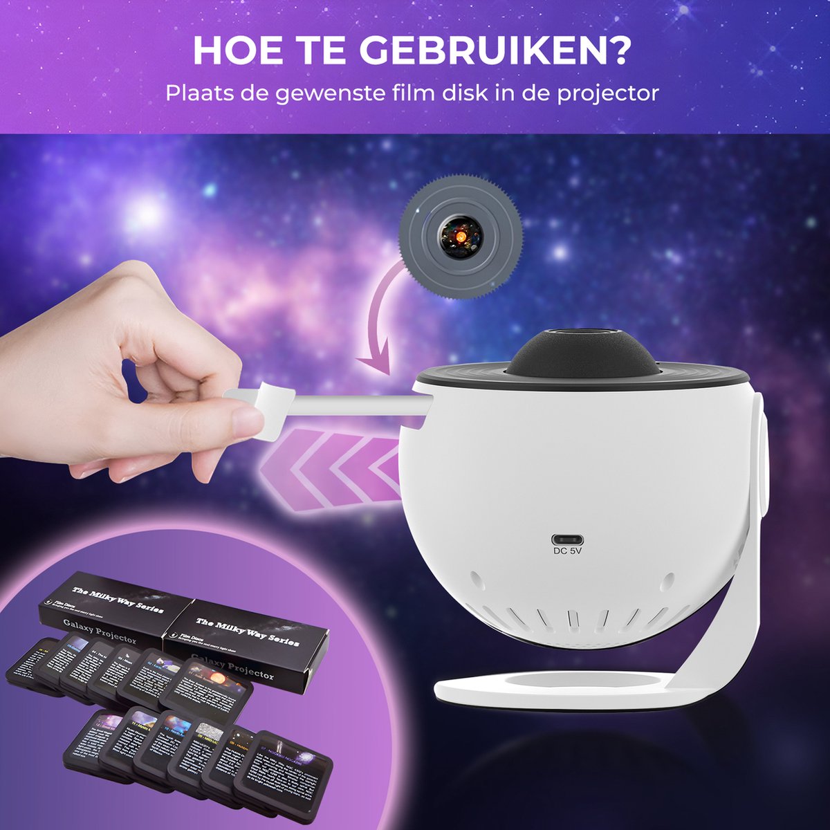 Verwandeln Sie Ihr Zimmer in einen zauberhaften Sternenhimmel mit der MostEssential 12-in-1 Projektorlampe! Dieser einzigartige Projektor bietet nicht weniger als 12 verschiedene Galaxien und Planeten, so dass Sie immer den perfekten Blick auf das Universum haben werden. Dank der ultrascharfen Bildtechnologie und der interaktiven Scheibenwechsel-Funktion wird das Erlebnis nicht nur magisch, sondern auch ein Spaß für Kinder!
